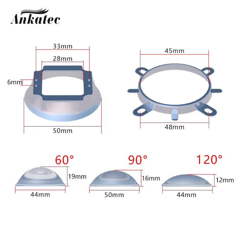 Home chevron_right Shop chevron_right Uncategorized chevron_right 1 Set 44mm LED Optical Lens 60 90 120 Degree Refle