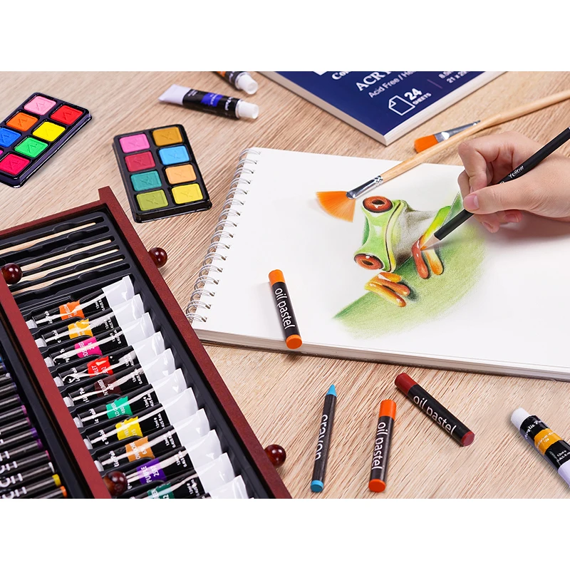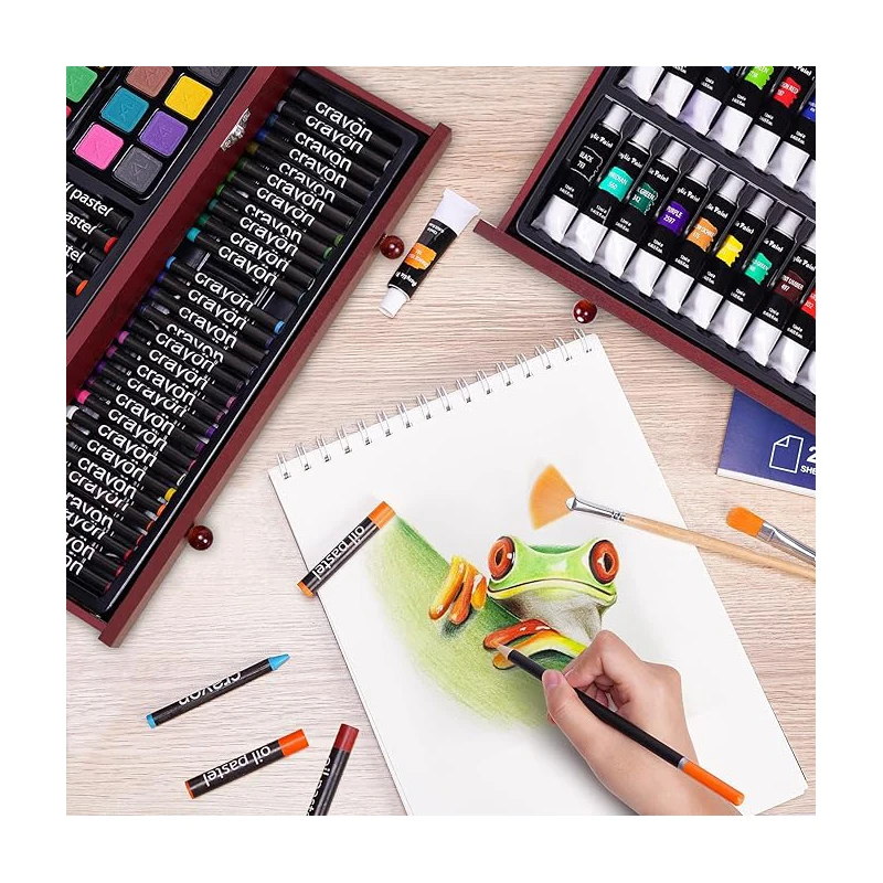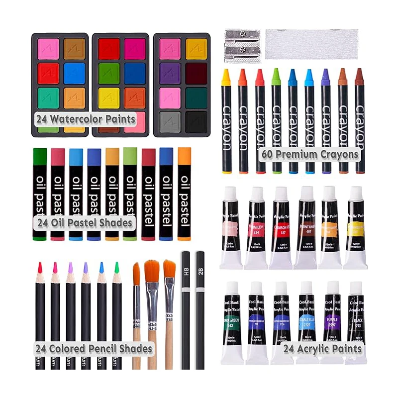 ZMOL Children's Art Set 175 Pcs Wooden Box with Crayons Acrylic Paints & Colored Pencils-Customized Colors